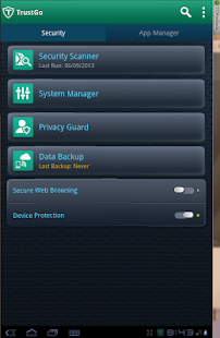 protects you from today's most dangerous malware and viruses PLUS apps that can steal your personal privacy, identity and data. In addition, TrustGo offers "Find My Phone" features including remote location, lock, alarm and "Candid Camera" thief ID (via email), system tools and web browsing security...all in one totally Free package.