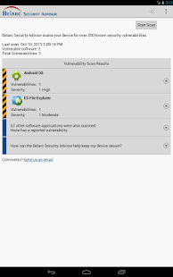 does this by automatically checking your Android tablet or phone for over 400 security vulnerabilities in both the operating system and installed apps, and gives you the result in seconds as to which ones are vulnerable and need to be updated. The Security Advisor also works with all other security apps such as anti-virus and anti-malware apps.